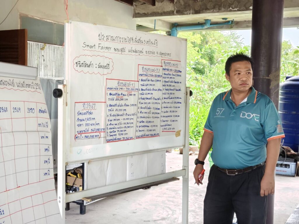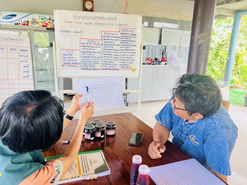วันที่ 14 สิงหาคม 2568 สำนักงานเกษตรจังหวัดสมุทรปราการ ร่วมกับสำนักงานเกษตรอำเภอบางบ่อ ลงพื้นที่ถอดบทเรียนเกษตรกรผู้เข้าร่วมโครงการส่งเสริมและพัฒนาเพื่อเข้าสู่ห่วงโซ่อุปทานและบริการมูลค่าสูง ปี 2568 มีวัตถุประสงค์เพื่อเก็บข้อมูลถอดบทเรียนนายสุธีร์ แป้นสมบูรณ์ เกษตรกรผู้เข้าร่วมโครงการฯ ข้อมูลถานการณ์ด้านการผลิต การตลาด ผลผลิตที่ออกจำหน่าย การวางแผนการผลิตและตลาด และให้คำเเนะนำสำหรับการพัฒนาสินค้าเพื่อเพิ่มมูลค่าสินค้าสร้างรายได้ ณ หมู่ที่ 4 ตำบลคลองสวน อำเภอบางบ่อ จังหวัดสมุทรปราการ