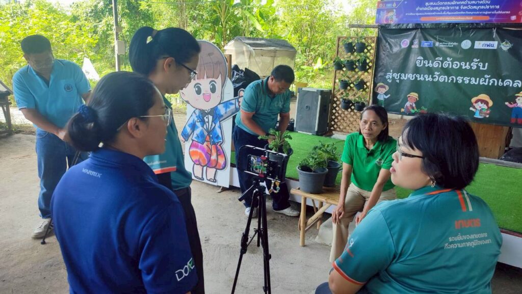 เกษตรจังหวัดสมุทรปราการ ลงพื้นที่ติดตามความก้าวหน้าขับเคลื่อนงานวิสาหกิจชุมชนและถ่ายทำคลิปประชาสัมพันธ์กิจกรรมตลาดผักเคลบางด้วน