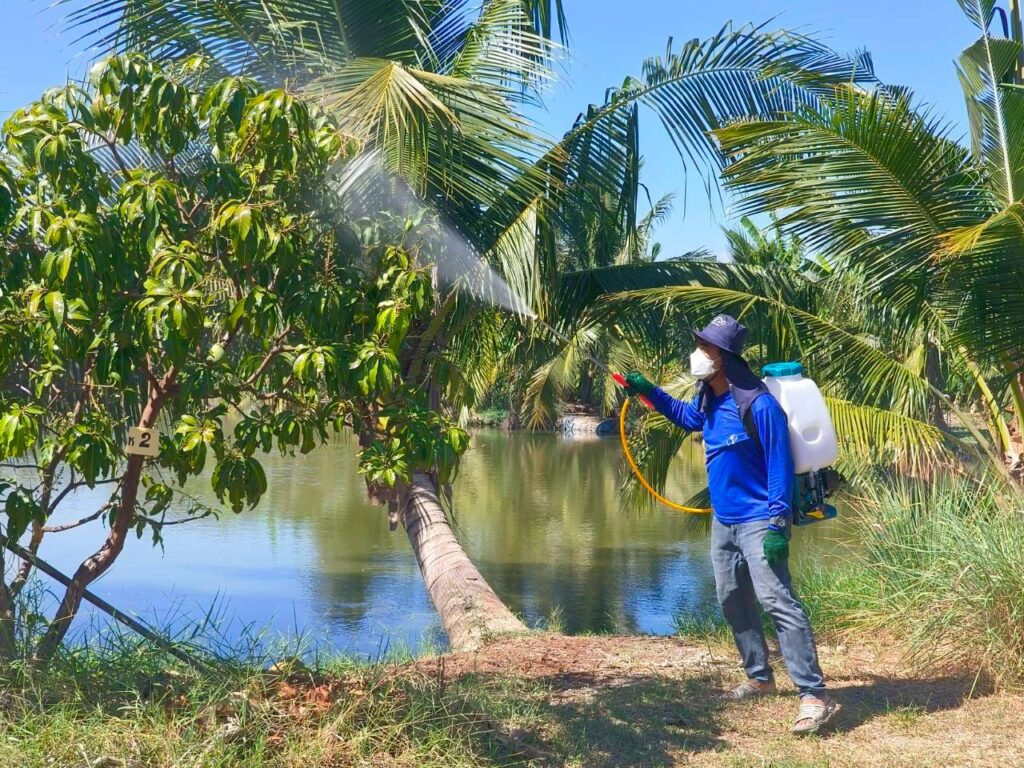 วันที่ 16 ธันวาคม 2568 สำนักงานเกษตรจังหวัดสมุทรปราการ ได้ลงพื้นที่แปลงมัะม่วงเพื่อดำเนินการศึกษาและทดลองการใช้ดินขาว Kaolin ในการป้องกันโรคและแมลงศัตรูมะม่วงในแปลงทดสอบ จำนวน 4 แปลง มีวัตถุประสงค์เพื่อศึกษาความเป็นไปได้ของดินขาว Kaolin ในการป้องกันโรคและแมลงศัตรูของมะม่วงและศึกษาวิธีการและขั้นตอนในการใช้ดินขาว Kaolin เพื่อพัฒนาคุณภาพผลผลิตมะม่วงของจังหวัดสมุทรปราการ โดยในวันนี้ได้มีการเก็บข้อมูลแปลงทดสอบก่อนดำเนินการทั้ง 4 แปลง และได้ดำเนินการฉีดพ่นดินขาว Kaolin ครั้งที่ 1 ซึ่งหลังจากนี้จะมีการติดตามผลพร้อมทั้งฉีดพ่นซ้ำทุก 15 วัน จนถึงระยะเก็บเกี่ยวผลผลิตต่อไป ณ หมู่ที่ 13 ตำบลบางเสาธง อำเภอบางเสาธง จังหวัดสมุทรปราการ