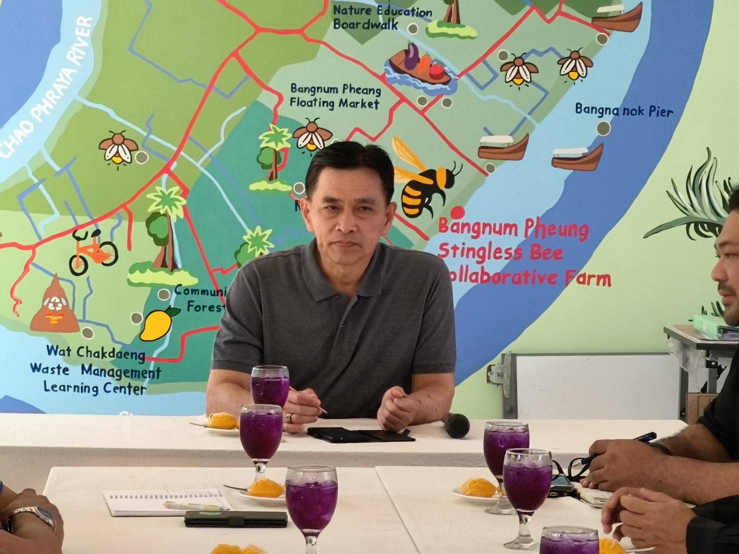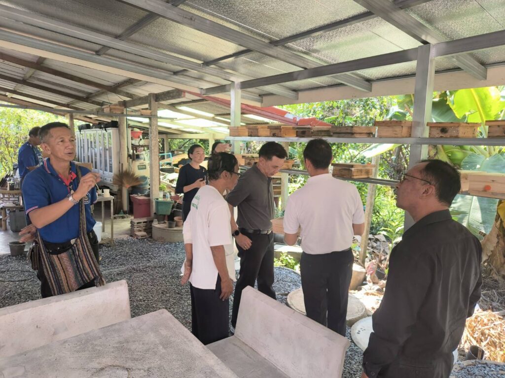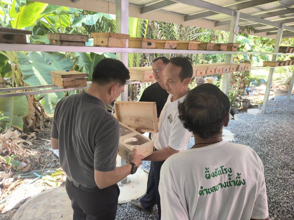 วันที่ 27 กุมภาพันธ์ 2569 นายปัญญา ประดิษฐสาร ผู้อำนวยการสำนักงานส่งเสริมและพัฒนาการเกษตรที่ 3 จังหวัดระยอง ลงพื้นที่เพื่อติดตามการขับเคลื่อนโครงการส่งเสริมและพัฒนาเพื่อเข้าสู่ห่วงโซ่อุปทานและบริการมูลค่าสูงของกลุ่มแปลงใหญ่ผึ้งชันโรงตำบลบางน้ำผึ้ง อำเภอพระประแดง โดยนางสาวขวัญตา หล่อเพชร เกษตรจังหวัดสมุทรปราการ มอบหมายให้นายพินิจ จันทร์พรมดี หัวหน้ากลุ่มอารักขาพืช นายศักดิ์ดา พรมหา หัวหน้ากลุ่มส่งเสริมและพัฒนาการผลิต และเจ้าหน้าที่สำนักงานเกษตรจังหวัดสมุทรปราการ ร่วมต้อนรับและให้ข้อมูลการดำเนินงานโครงการฯ ดังกล่าว ในพื้นที่ได้มีการพูดคุยสอบถามถึงกับขับเคลื่อนกิจกรรมของกลุ่ม รวมถึงปัญหา อุปสรรค และข้อเสนอแนะ เพื่อเป็นแนวทางในการปรับปรุงการดำเนินงานให้บรรลุวัตถุประสงค์ของโครงการฯ ที่จะทำให้เกษตรกรมีรายได้เพิ่มขึ้น 3 เท่า ภายในปี พ.ศ. 2570 ณ ที่ทำการกลุ่มแปลงใหญ่ผึ้งชันโรงตำบลบางน้ำผึ้ง หมู่ที่ 6 ตำบลบางน้ำผึ้ง อำเภอพระประแดง จังหวัดสมุทรปราการ