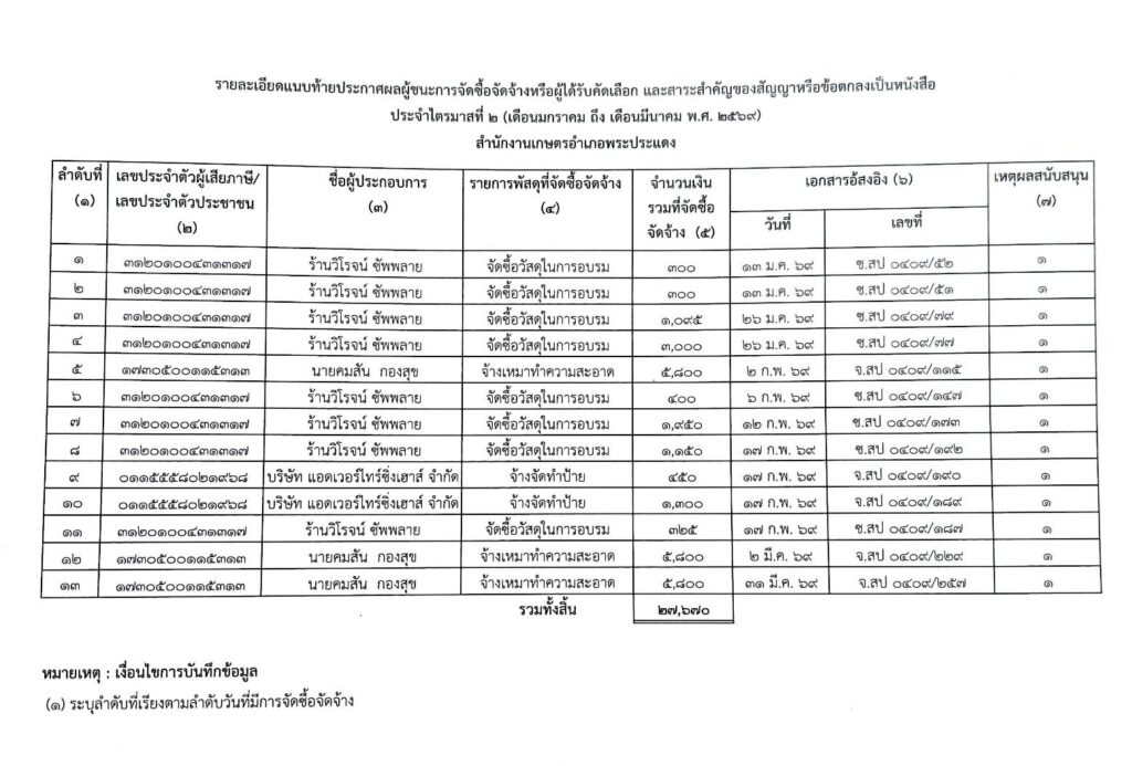 ประจำไตรมาสที่ 2  (เดือนมกราคม ถึง เดือนมีนาคม พ.ศ. 2569)