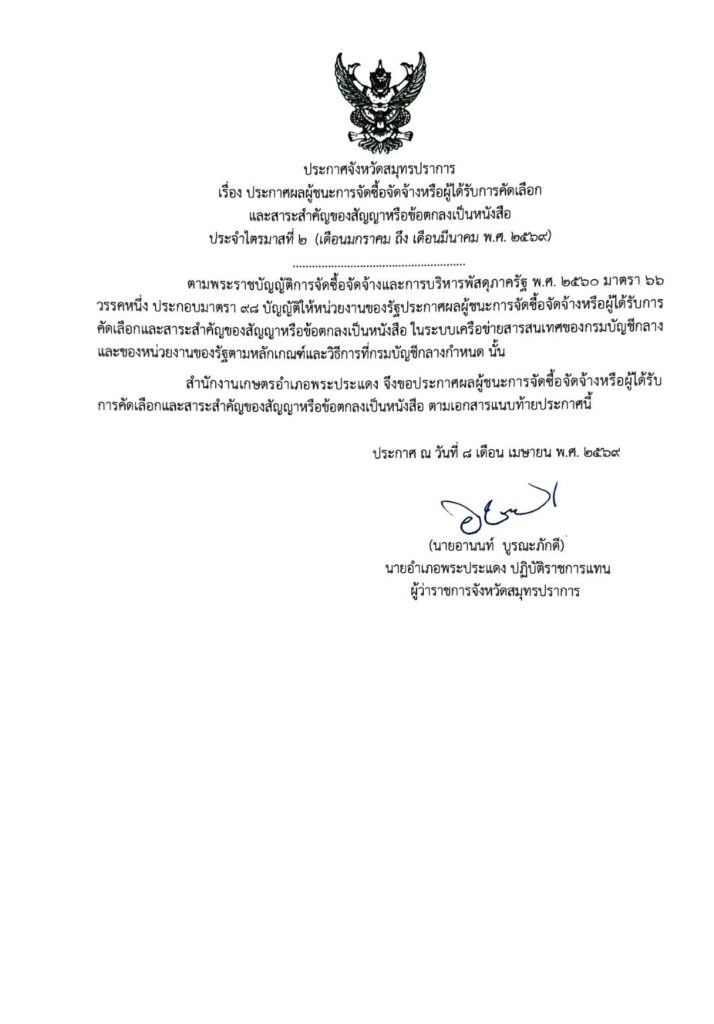 ประกาศผลผู้ชนะการจัดซื้อจัดจ้างหรือผู้ได้รับการคัดเลือก ข่าวประกาศ / admin_phrapradaeng และสาระสำคัญของสัญญา […] ประกาศผลผู้ชนะการจัดซื้อจัดจ้างหรือผู้ได้รับการคัดเลือก Read More »